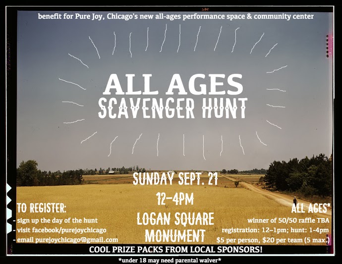 Pure Joy, the all-ages performance space and community center that’s been in the works for several eons now, is hosting a scavenger hunt to benefit the space. Throw a little cash into their coffers and compete for fabulous punk rock prize packs this Sunday at the Logan Monument.