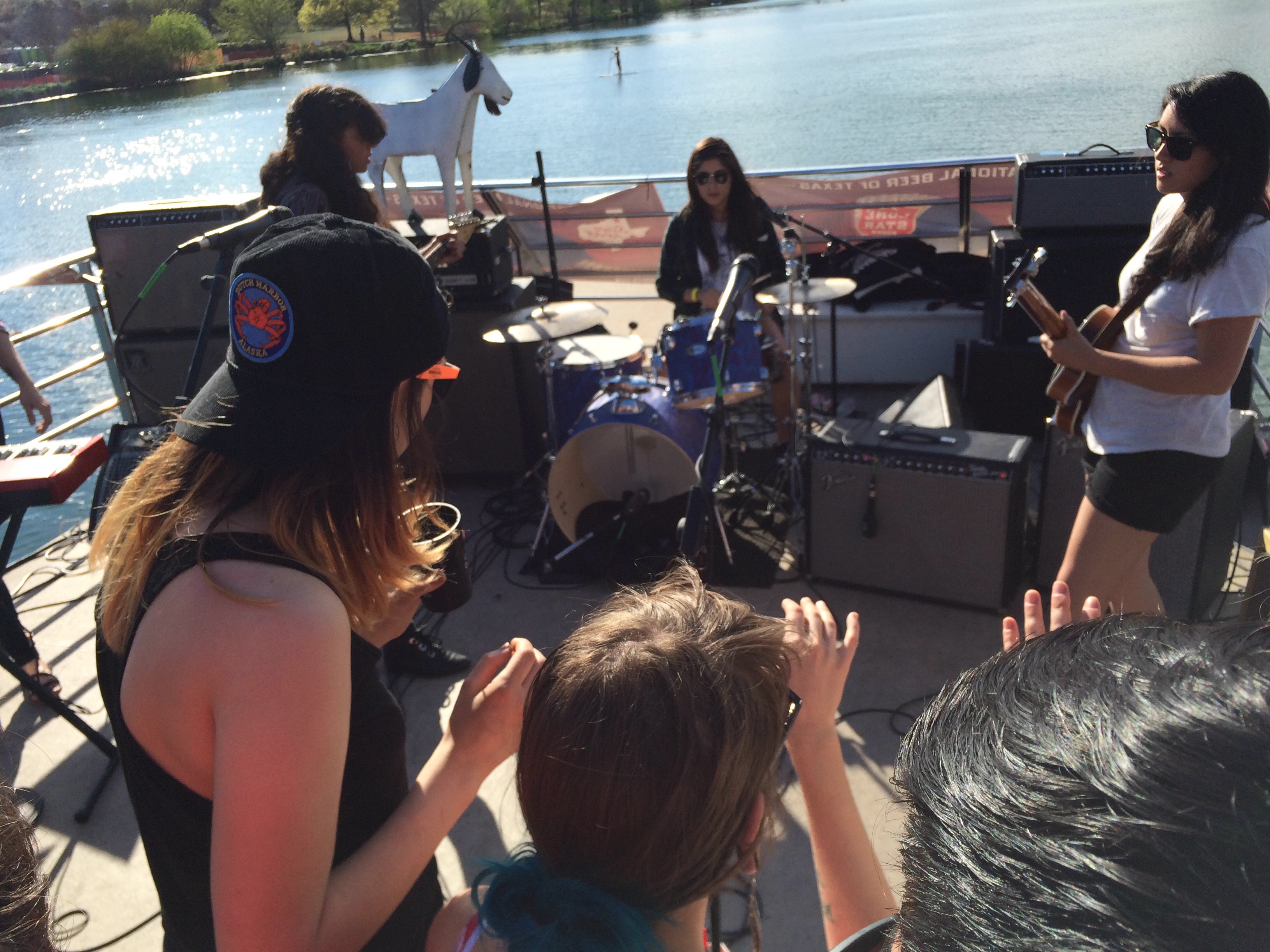 After that, my friends and I wandered around and scored some more free beers (and saw a boring alternative rock band and a forgettable indie pop band) and then it was time for me to go get ON A BOAT for the Panache Booking Bruise Cruise featuring La Luz (fuck yes I picked the rhyming one).