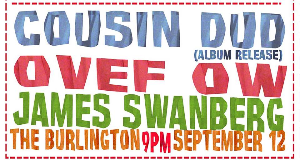 Tomorrow night, head to The Burlington for Ovef Ow with Cousin Dud and James Swanberg. I came across Ovef Ow’s self-titled EP on Bandcamp and am really excited to see them live. If you love rad female-fronted garage/pop bands like Blizzard Babies and Strawberry Jacuzzi, check these guys out.